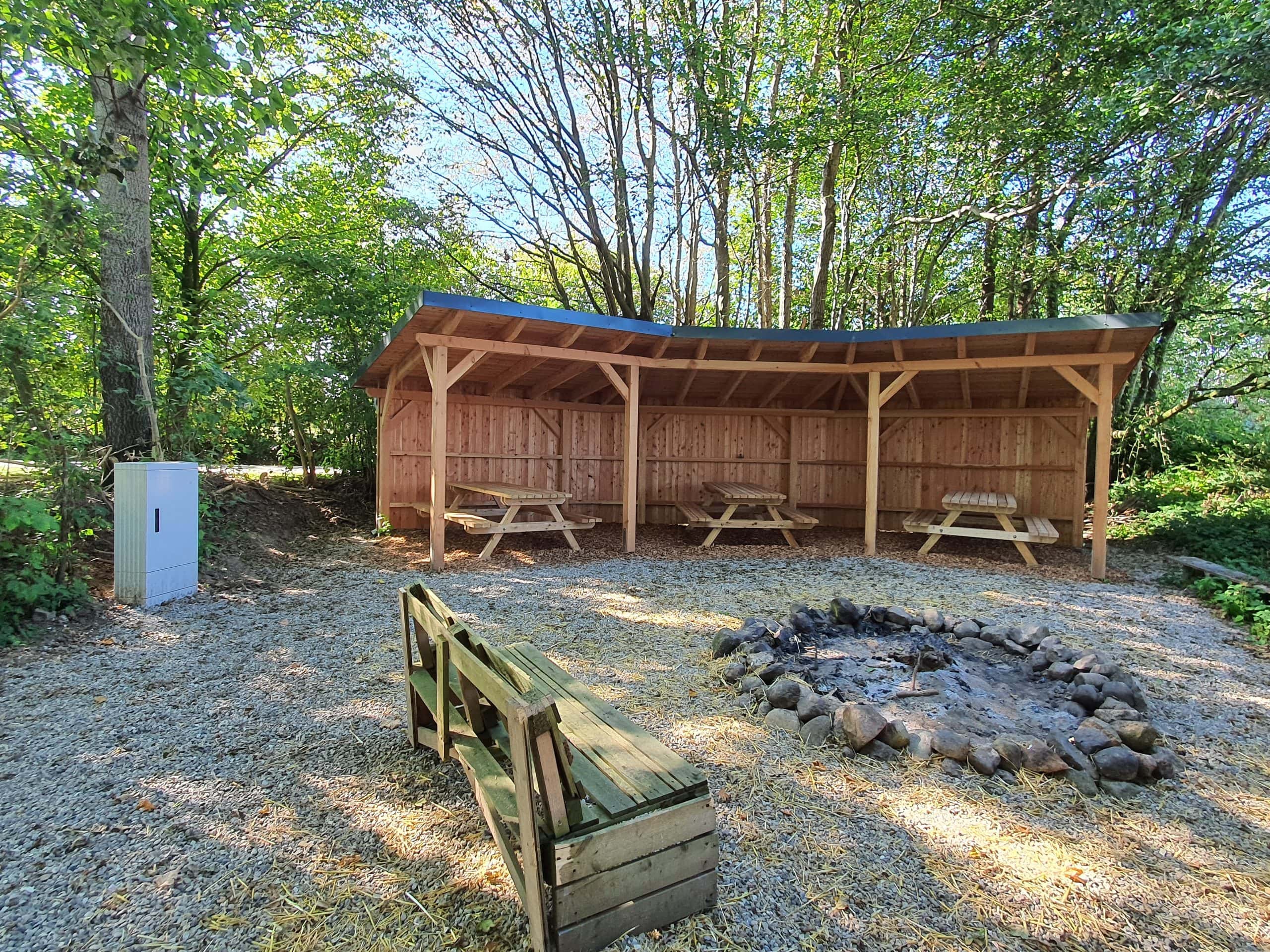 Bau einer Überdachung mit Sitzgelegenheiten und Herstellung eins Stromanschlusses am Grillplatz