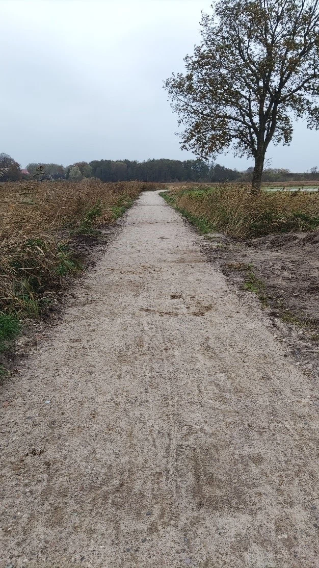 2. Der zweite Abschnitt erstreckt sich von der Brücke bis zum Deich. Auf diesem Abschnitt wird der gesamte Weg auf das Niveau angehoben, welches der Weg auf dem Teil von der Brücke bis zur ersten Kurve schon hat. Zudem sollen die Grasbetonplatten, die durch Absinken eine Gefahr (Stolpferfallen, Rillenbildung in dem Radreifen stecken bleiben) für Radfahrer und Fußgänger darstellen, als Oberfläche durch einen wassergebundenen Weg ersetzt werden. So ist die Unterhaltung deutlich einfacher, und die Oberfläche ist breiter und glatter.