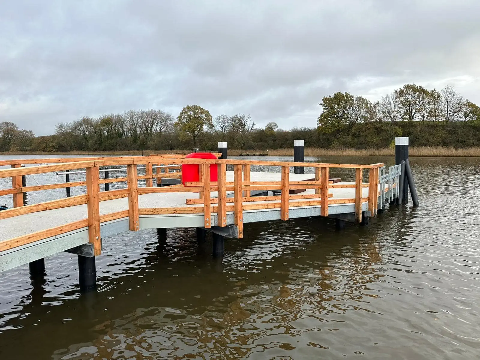 - Die Möglichkeit zum Besteigen der Schleischiffe wird durch die neue Anlage ermöglicht. Die vorhandenen Reibepfähle sind stabil und weiterhin nutzbar.