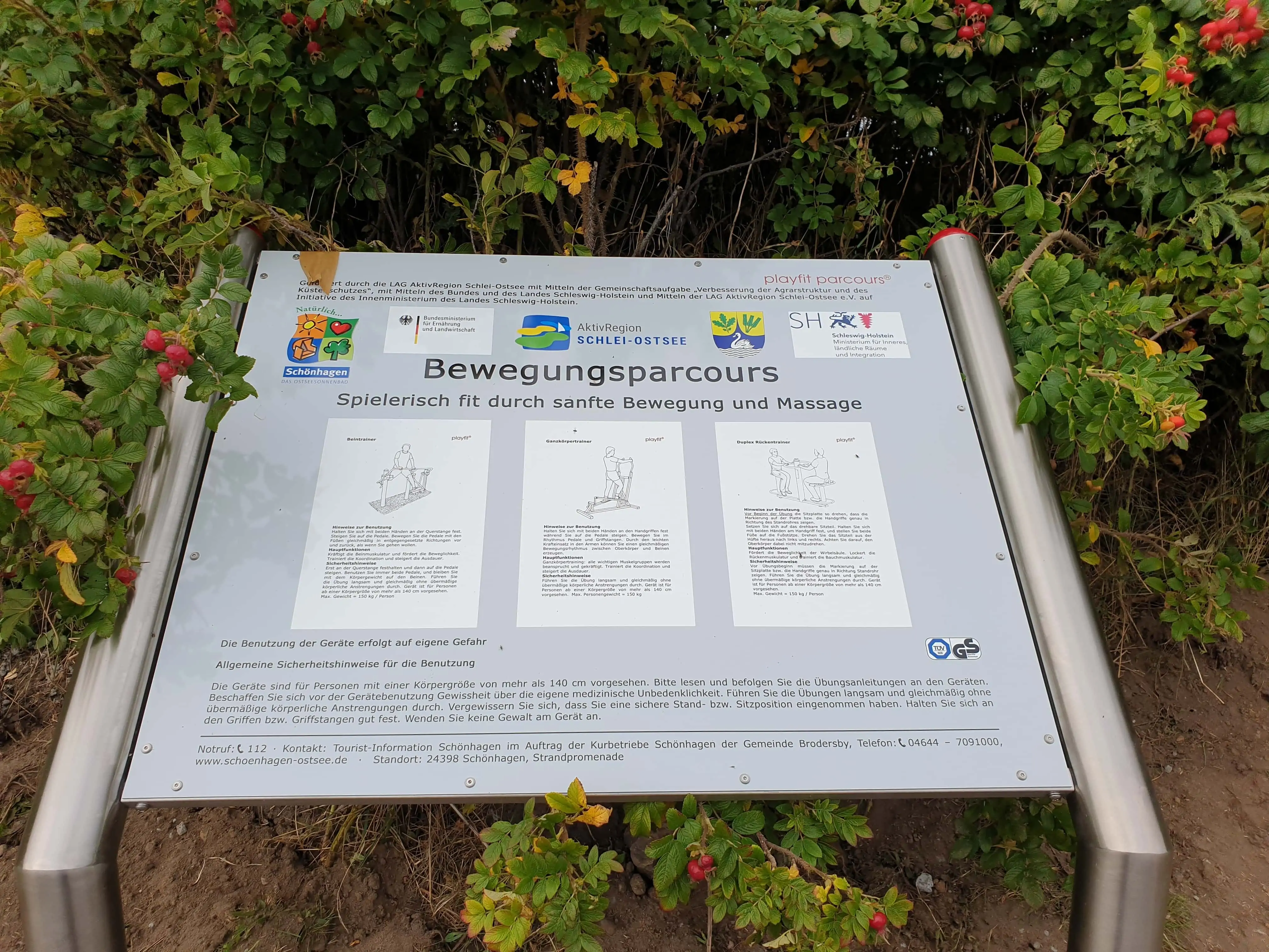An der Strandpromenade in Brodersby zwischen Strandstraße und Nordhagener Straße soll ein Bewegungspark auf einer Grünfläche errichtet werden. Folgende Geräte werden dafür angeschafft und verbaut: